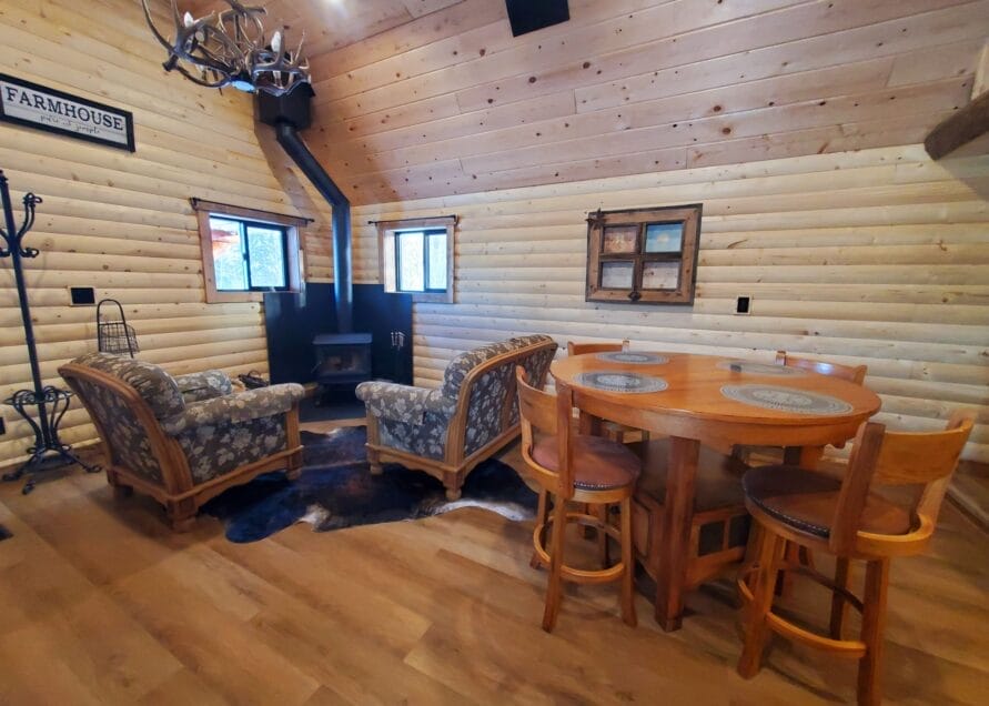 The Cowboys Cabin is the perfect blend of rustic charm and modern comfort. Designed to accommodate up to 4 adults, it’s ideal for families or small groups looking for a cozy getaway.